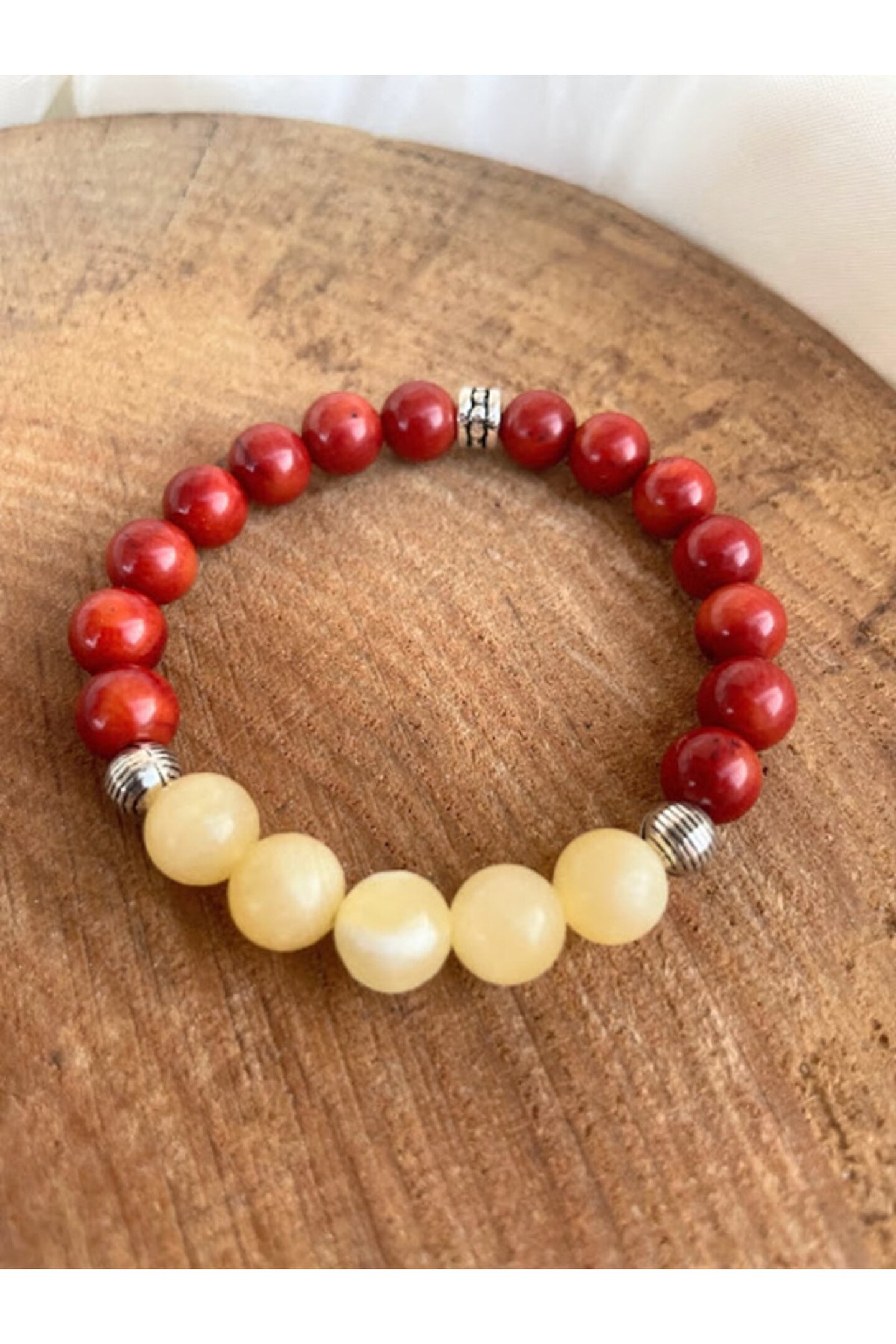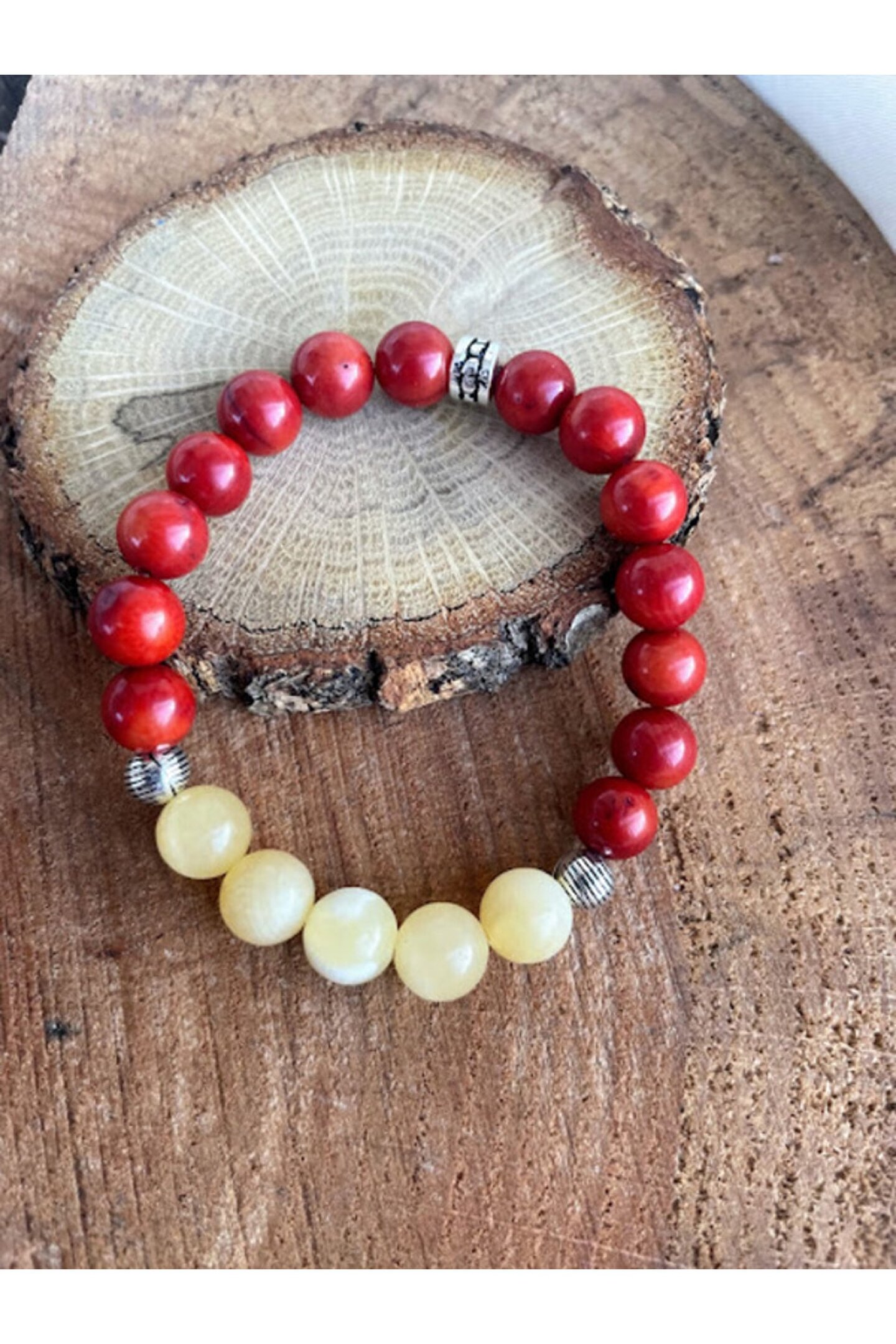 Bu üründe kullanılan doğal taş: Mercan-Kalsit .. bu üründe kullanılan doğal taş boyutu: 8 mm 8 mm Misinali İpli kullanılmıştır. Ürün ile birlikte Yedek misinada gönderilmektedir.