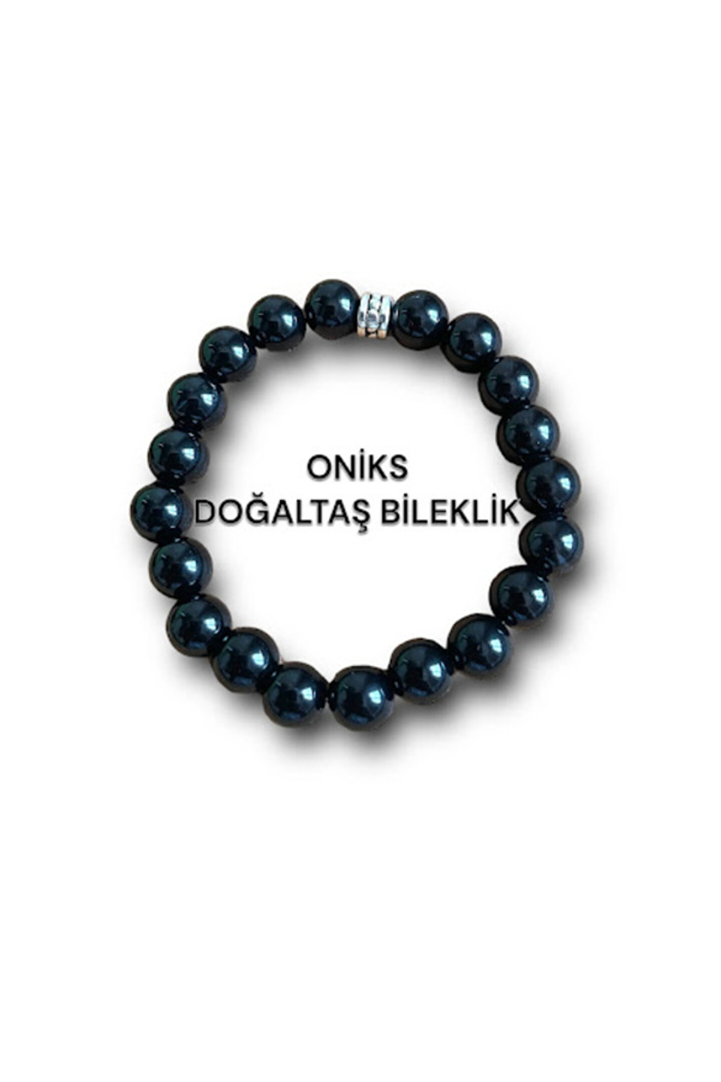 Bu üründe kullanılan doğal taş boyutu: 8 mm Misinali İp kullanılmıştır. ; Ürün ile birlikte Yedek misinada gönderilmektedir. ; Birlikte tasarlamak istediğiniz ürün için bizimle iletişime geçebilirsiniz. ; Unutmayın, bu mağazadaki her şey size özel olacaktır. ; **ÜRÜNLERİMİZ DOĞALTAŞ OLDUĞU İÇİN RENKLERDE FARKLILIK GÖSTEREBİLİR** . ; !!! DOĞALTAŞLAR SADECE TIBBA DESTEK AMAÇLI ŞİFA NİYETİNE KULLANILMALIDIR, TEDAVİ EDİCİ DEĞİLDİ !!! ***ONİKS DOĞALTAŞ BİLEKLİK*** Oniks veya Damarlı Akik (İngilizce karşılığı olan Onyx de sıklıkla kullanılır), Oniks ismi Asur dilinde “yüzük, halka” anlamına gelen sözcükten türemiştir. ; Kuvars’ın kripto kristalin bir türü olan oniks, farklı renklerde birçok katmana sahip olan bir taştır. ; Katmanların renkleri oldukça değişkendir ve beyazdan siyaha kadar birçok farklı renkte olabilir. ; Bir oniks türü olan Sardonikste (Sardonyx) ise renkli şeritler kırmızının tonlarıdır. ; Bazen kalsit gibi farklı taşlara da hatalı bir şekilde oniks dendiği olmuştur. ; Oysa örneğin kalsit, onikse oranla çok daha yumuşaktır ve daha yaygın bulunur. ; Kimyasal formülü SiO2, silikon dioksit, olan oniksin Mohsskalasına göre sertliği 7’dir. ; -Denge taşıdır. ; İyi ile kötü, pozitif ile negatifin dengesi gibi birden gider. ; Kişiyi dengede tutar, ortada tutar. ; Aşırılıklarını törpüler. ; -Unutkanlığa iyi gelir. ; -Konsantrasyonu sağlar. ; Zihin bulanıklığını giderir. ; -Duyulan kaygılara karşı etkilidir. ; Gelecek kaygısını yok eder. ; -Kadın-erkek kutuplaşmasını dengeler ve ilişkileri kuvvetlendirir. ; -Kişiyi, ihtiyaç duyduğu her konuda enerjisiyle destekler. ; -Kontrol ve denge sağlar. ; Kişinin bağımlılıklarından kurtulmasına yardım eder. ; -Nazara karşı kullanılır -Topraklama taşıdır, stresi azaltır. ; -Ayaklara iyi gelir.;
