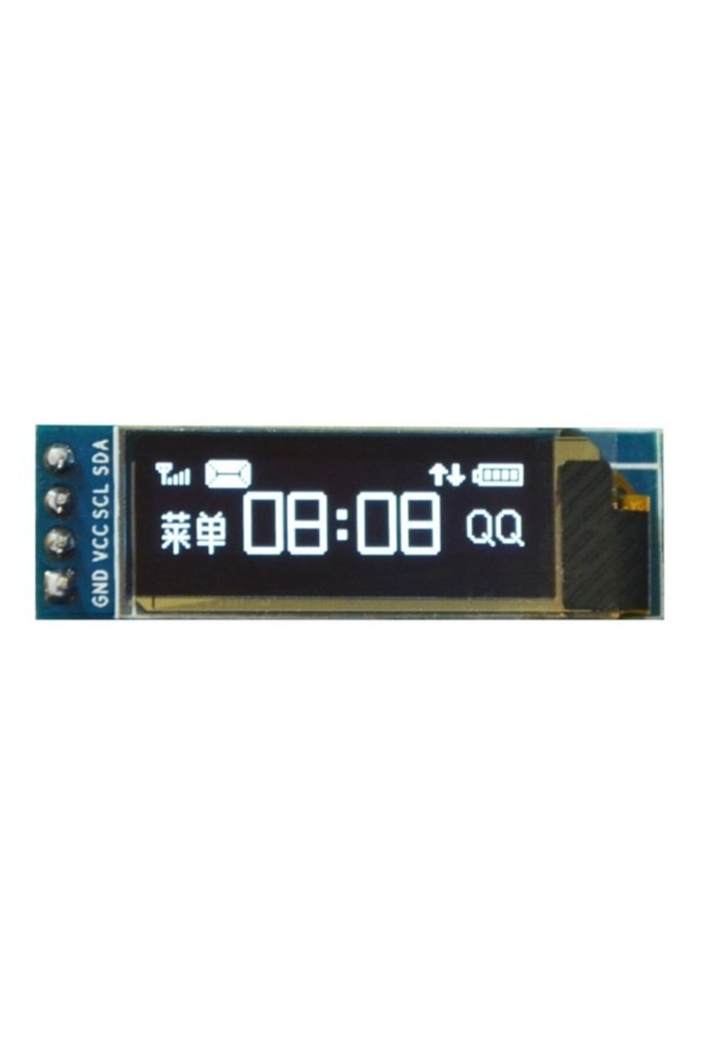 0.91" I2C 128X32 BEYAZ OLED LCD Description Diagonal screen size: 0.91" ; Number of pixels: 128 x 32 ; Display color: white ; Driver IC: SSD1306 ; Interface: I2C ; Operating temperature: -30 to 70°C ; Storage temperature: -40 to 80°C ; Mechanical specifications: ; Panel size: 30.0 x 11.5 x 1.2mm ; Active area: 22.384 x 5.584mm ; Pixel pitch: 0.175 x 0.175mm ; Pixel size: 0.159 x 0.159mm ; Pin Description: GND: Power Ground ; VCC: Power + (DC 3.3 ~5v) ; SCL: Clock Line ; SDA: Data Line ; Paket içeriği : • 1 Adet 0.91" I2C OLED 128x32 LCD ( Beyaz )