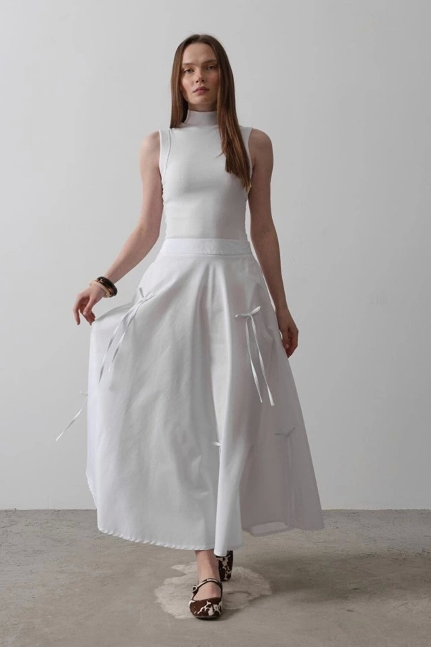 YOMNA Fiyonk Kloş Etek - Beyaz