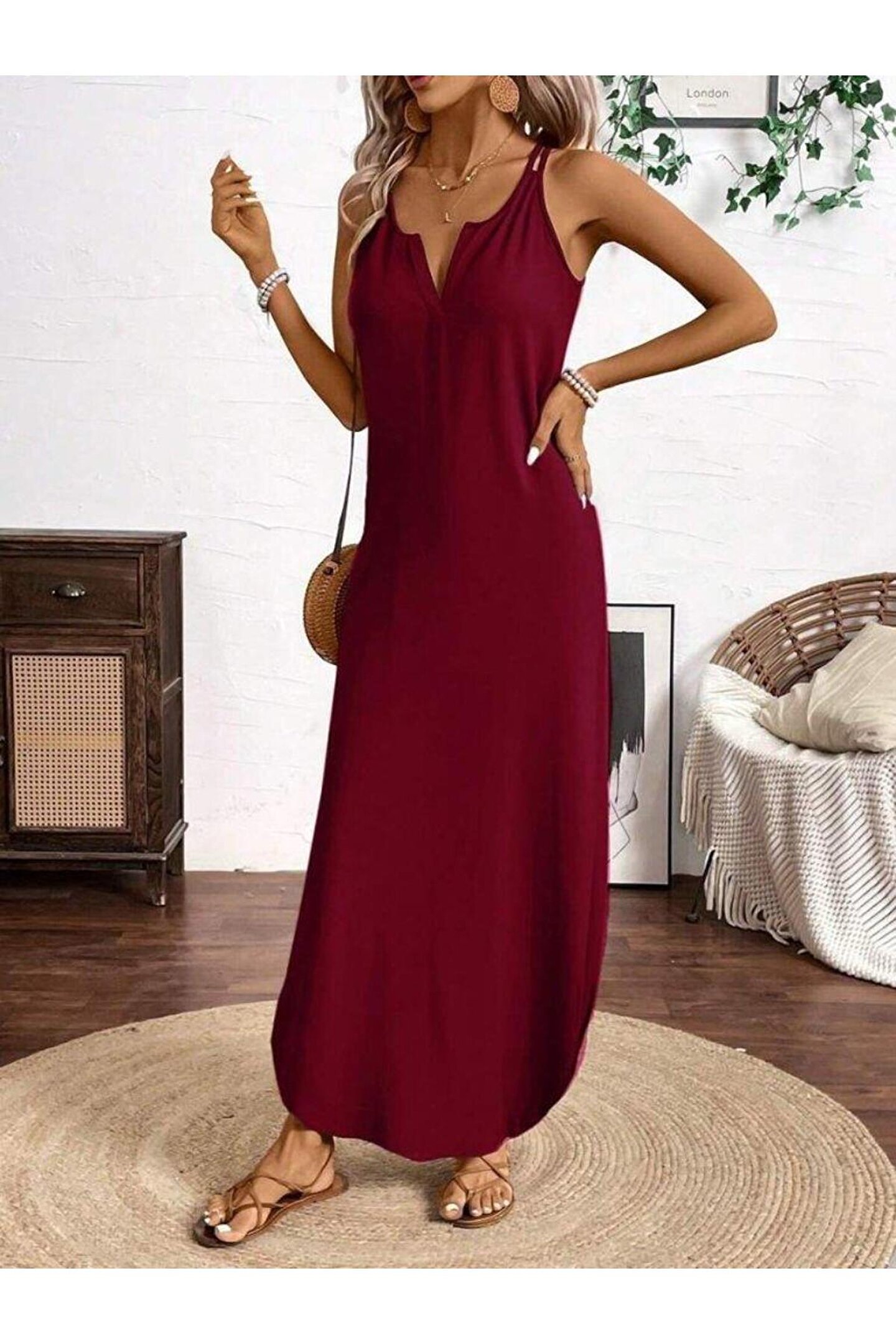 Kadın Askılı Yuvarlak Yaka Asimetrik Detaylı Viskon Elbise.; Ürün detayları ve kullanım hissi kişisel tercihlere göre değişiklik gösterebilir.