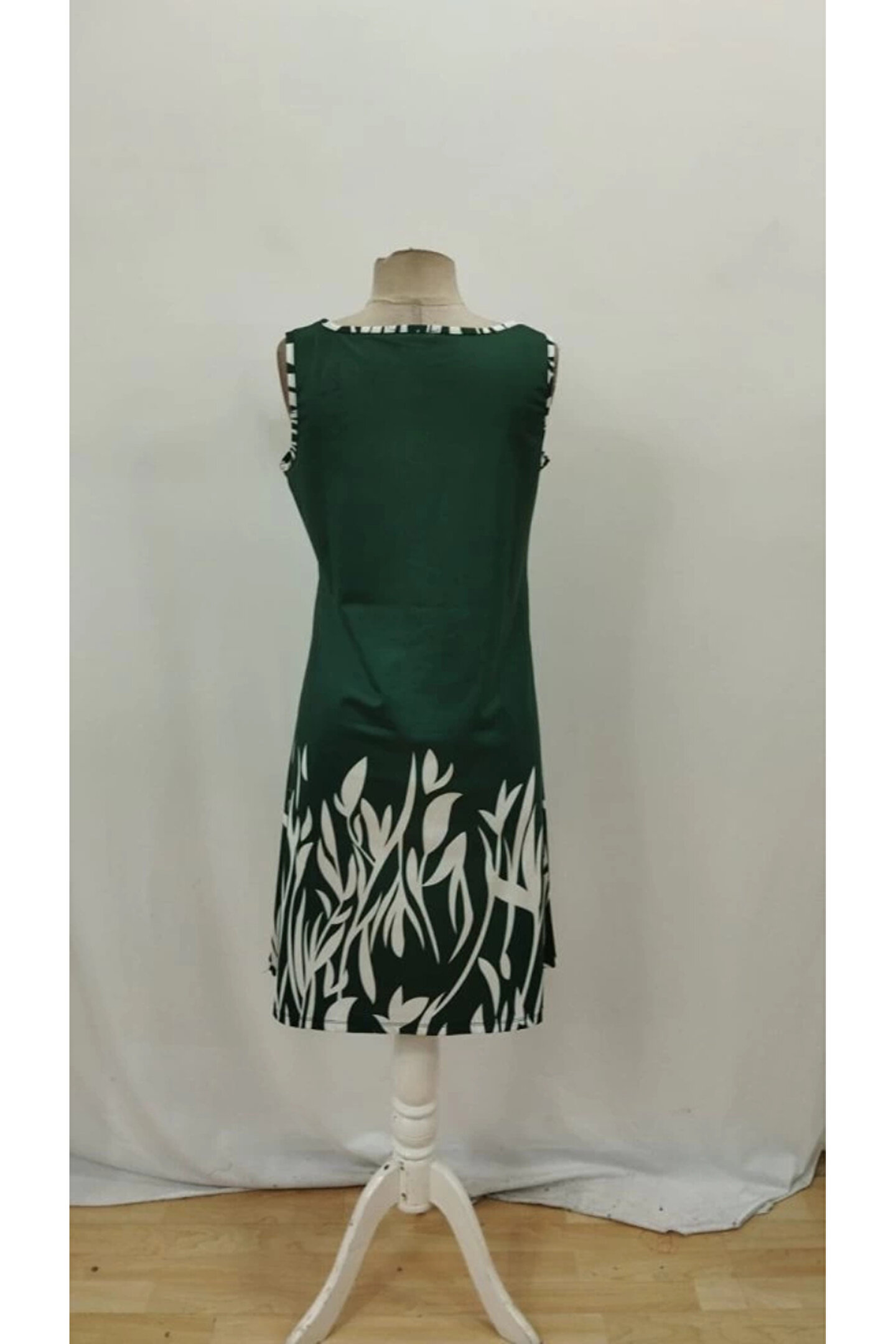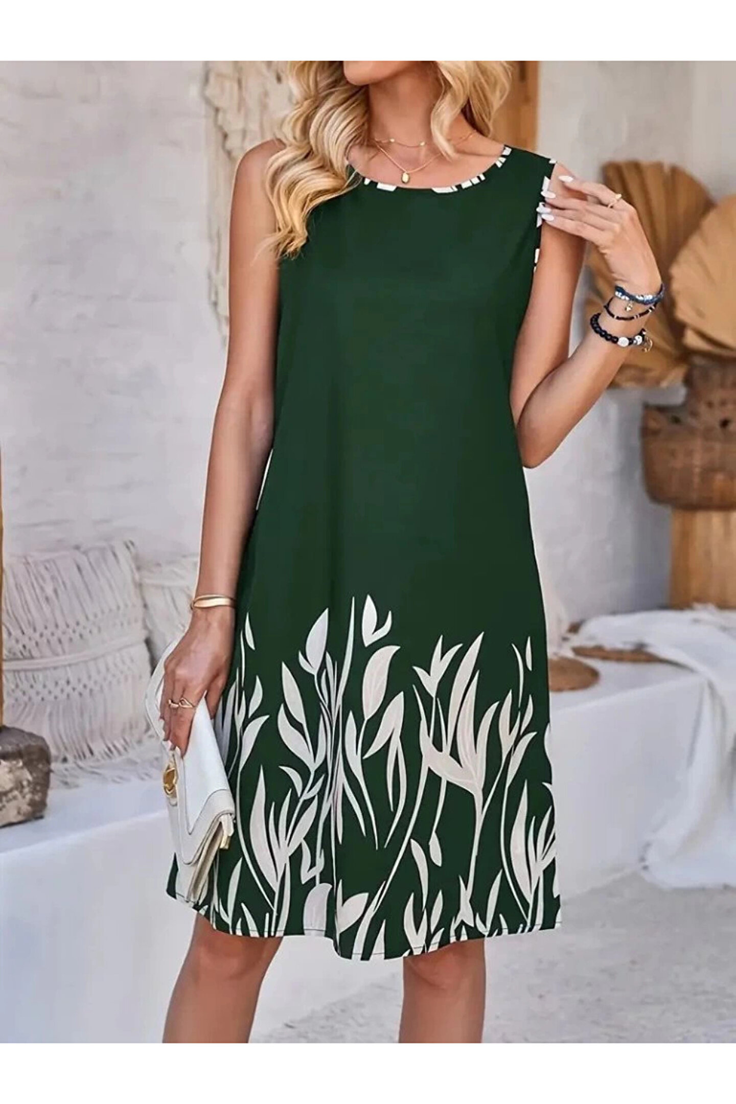 yonca aksesuar Kadın Askılı Yuvarlak Yakalı Yaprak Desenli Dalgıç Elbise