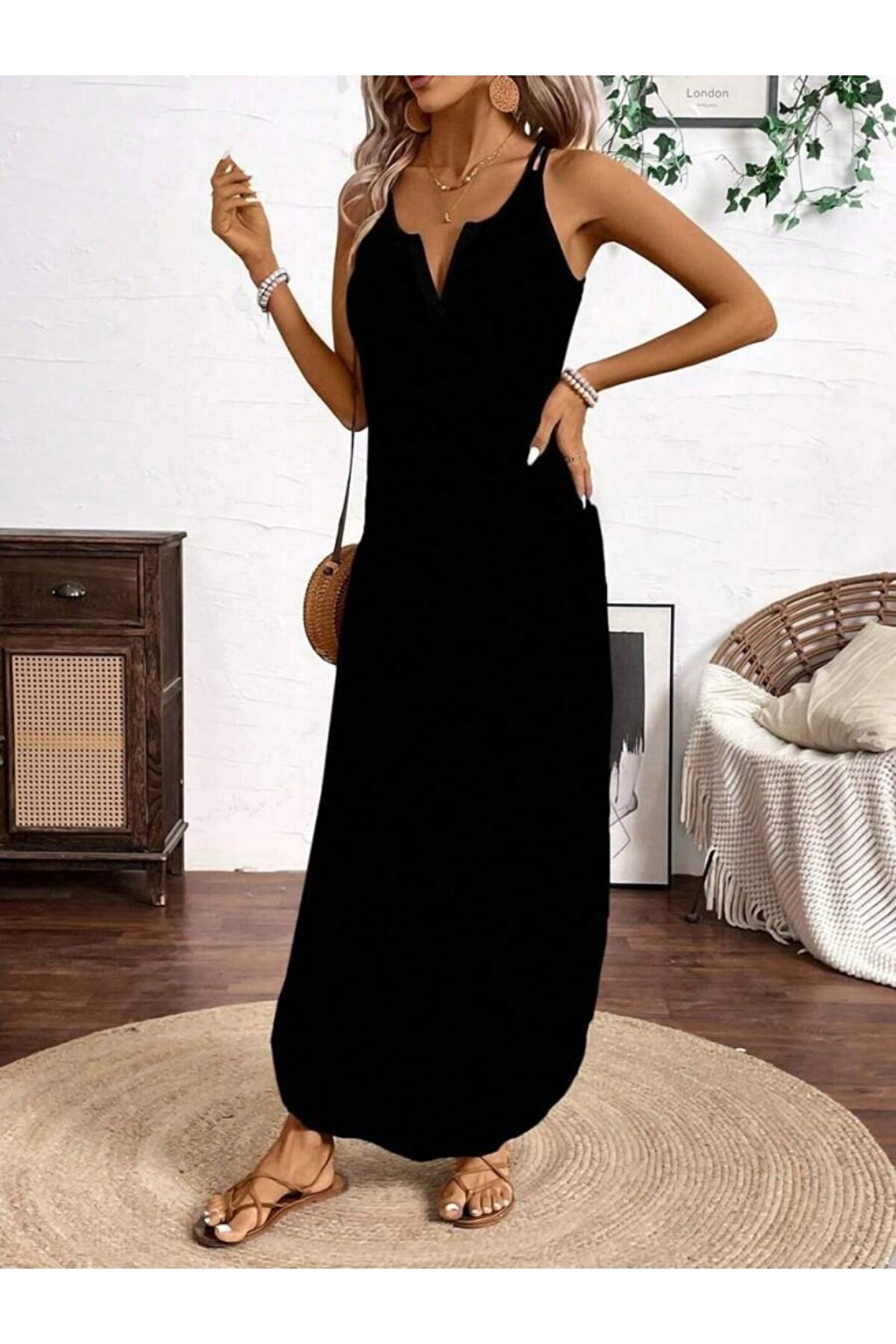 Pile Etek İnce Askılı Korse Formlu Poplin Kumaş Siyah Midi Elbise
