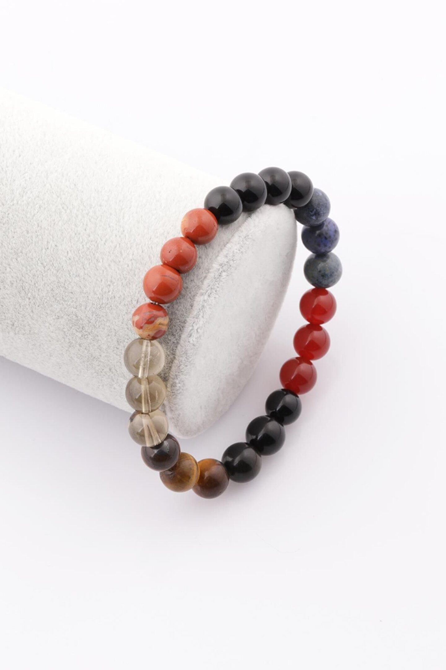 Tane Boyu 8 mm. ; Ağırlık 18 gr. ; Uzunluk 19 cm.Esnek Lastik Misinaya Dizilmiştir Her Bileğe Uyum Sağlar.Oğlak Burcuna Uyumlu Akik, Obsidyen, Red Jasper, Dumortierit, Oniks, Dumanlı Kuvars ve Kaplan Gözü Taşlarından Oluşmaktadır. ; Ürün Fotoğrafı Temsili Fotoğraftır, Ürünümüz Doğal Taş Olduğundan Renklerinde, Ağırlıklarında ve Boyutlarında Küçük Farklılıklar Gösterebilir. ; Boyut 8 mm;