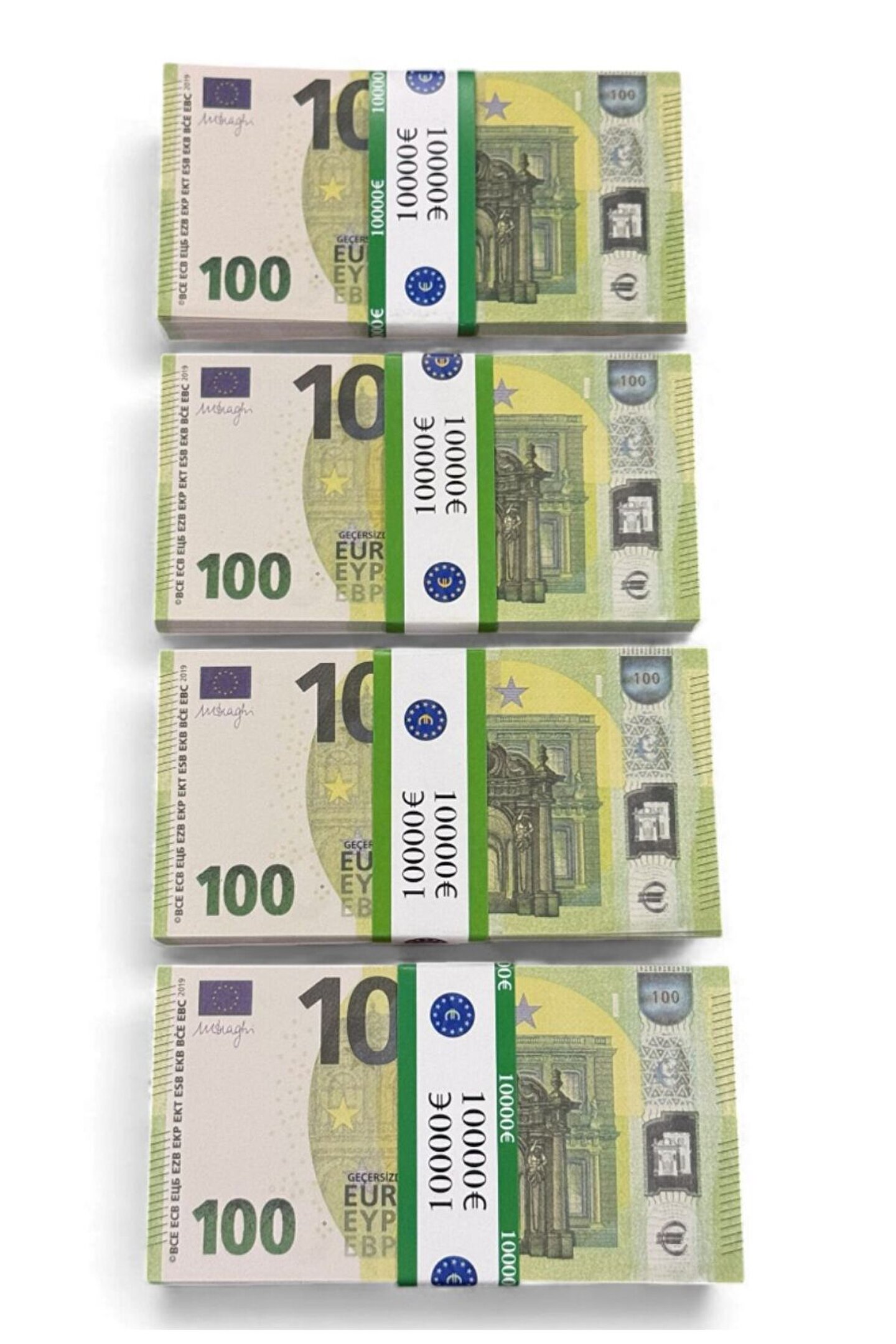 - Yılbaşı partilerinizde eğlenceli ve şık bir atmosfer yaratmak için ideal, dekoratif ve eğlencelik 100 Euro şaka parası.; - Türkiye menşeili, yerli üretim olan bu ürün, kalitesi ve güvenilirliği ile öne çıkıyor.; - 4 deste halinde sunulan bu şaka parası, düğün, kına, parti ve fotoğraf çekimlerinde kullanılabilir.; - Yılbaşı konseptinize uygun olarak tasarlanmış bu ürün, partinizi daha eğlenceli hale getirir.; 400 ADET 100 EURO GÖNDERİLMEKTEDİR PARA ÜZERİNDE GEÇERSİZ YAZISI YAZMAKTADIR