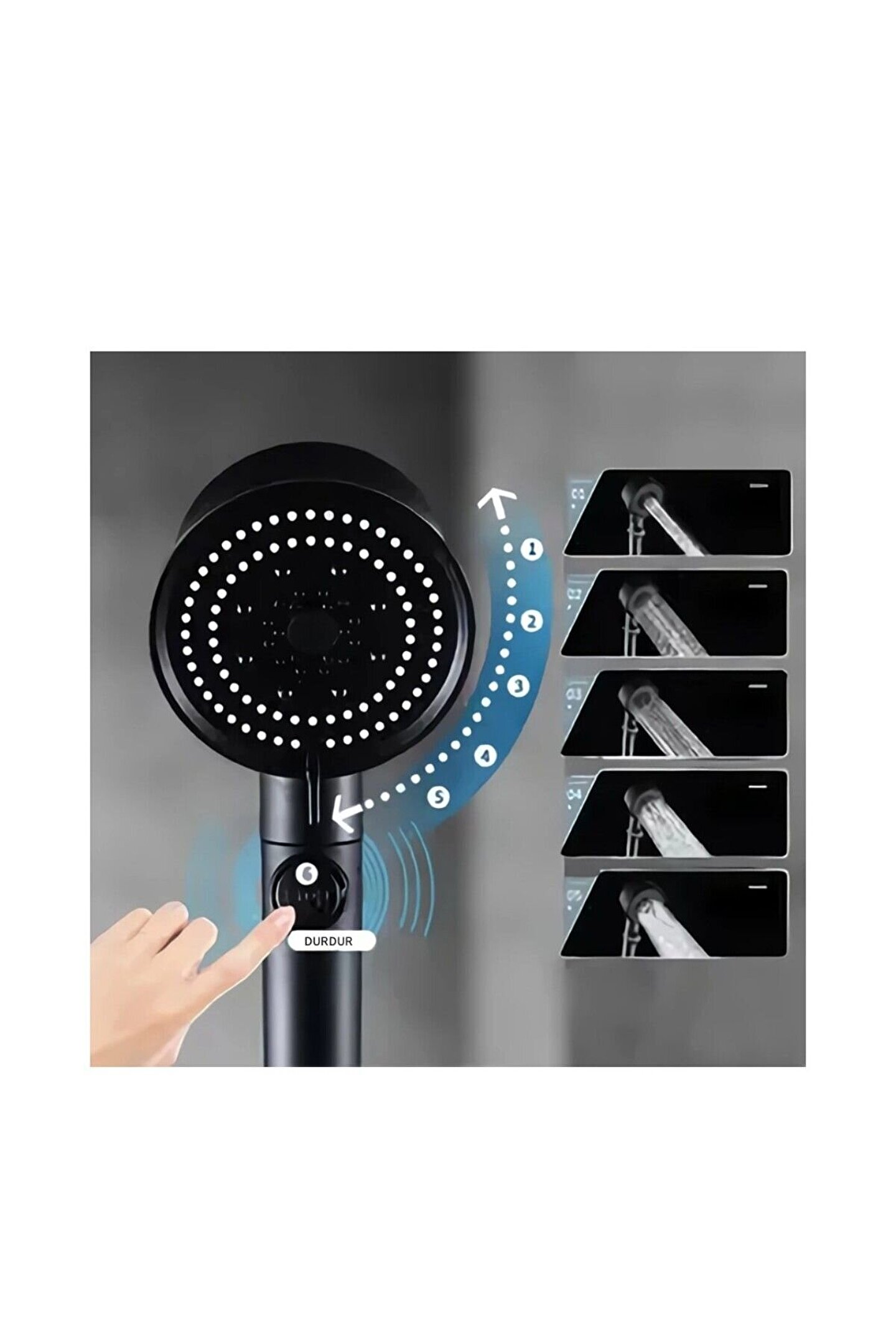 5 Fonksiyonlu Duş Başlığı - Turbo Fan Duş Başlığı - Siyah Yeni Model 542167