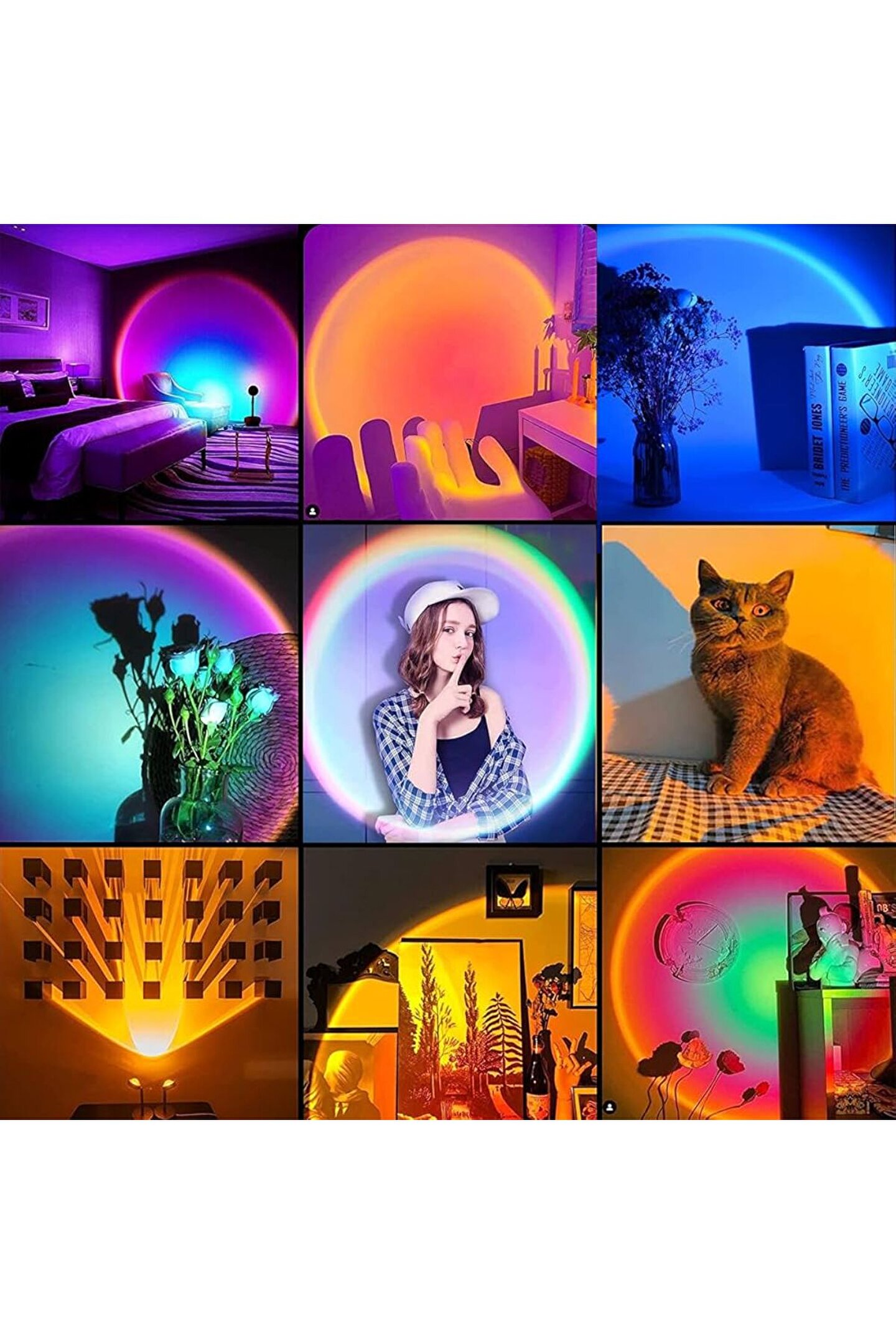 Bu öğe çocuğunuzun yatak odası duvarında güzel parlak bir gökkuşağı gün batımını yansıtmak için kullanılabilir ve her yaştan çocuklar için mükemmel bir gece lambası vardır.
