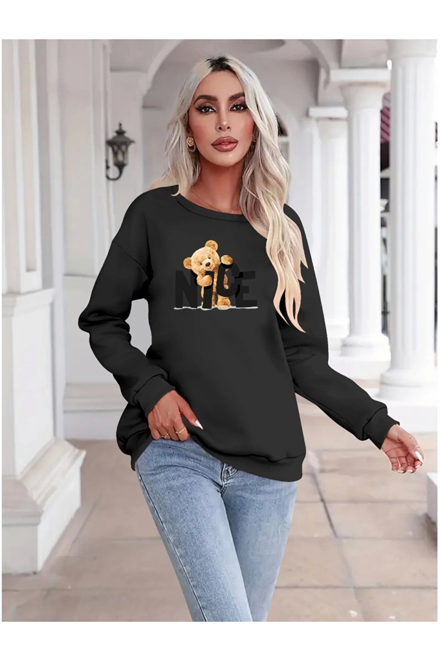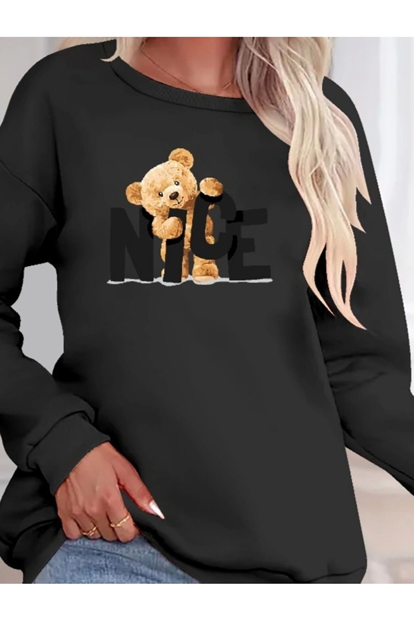 Kadın Uzun Kollu Bisiklet Yaka Viskon Iki Iplik Bluz
