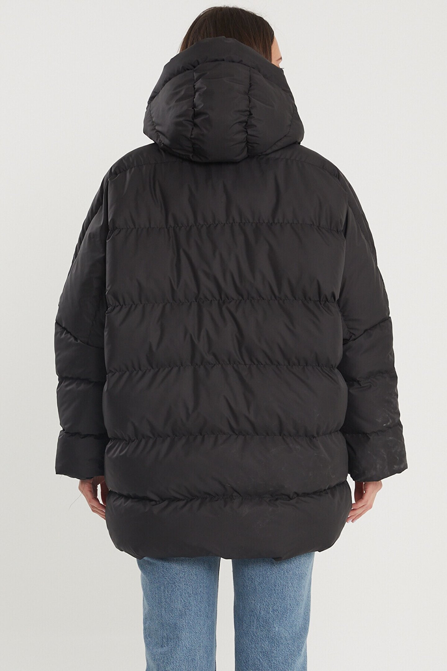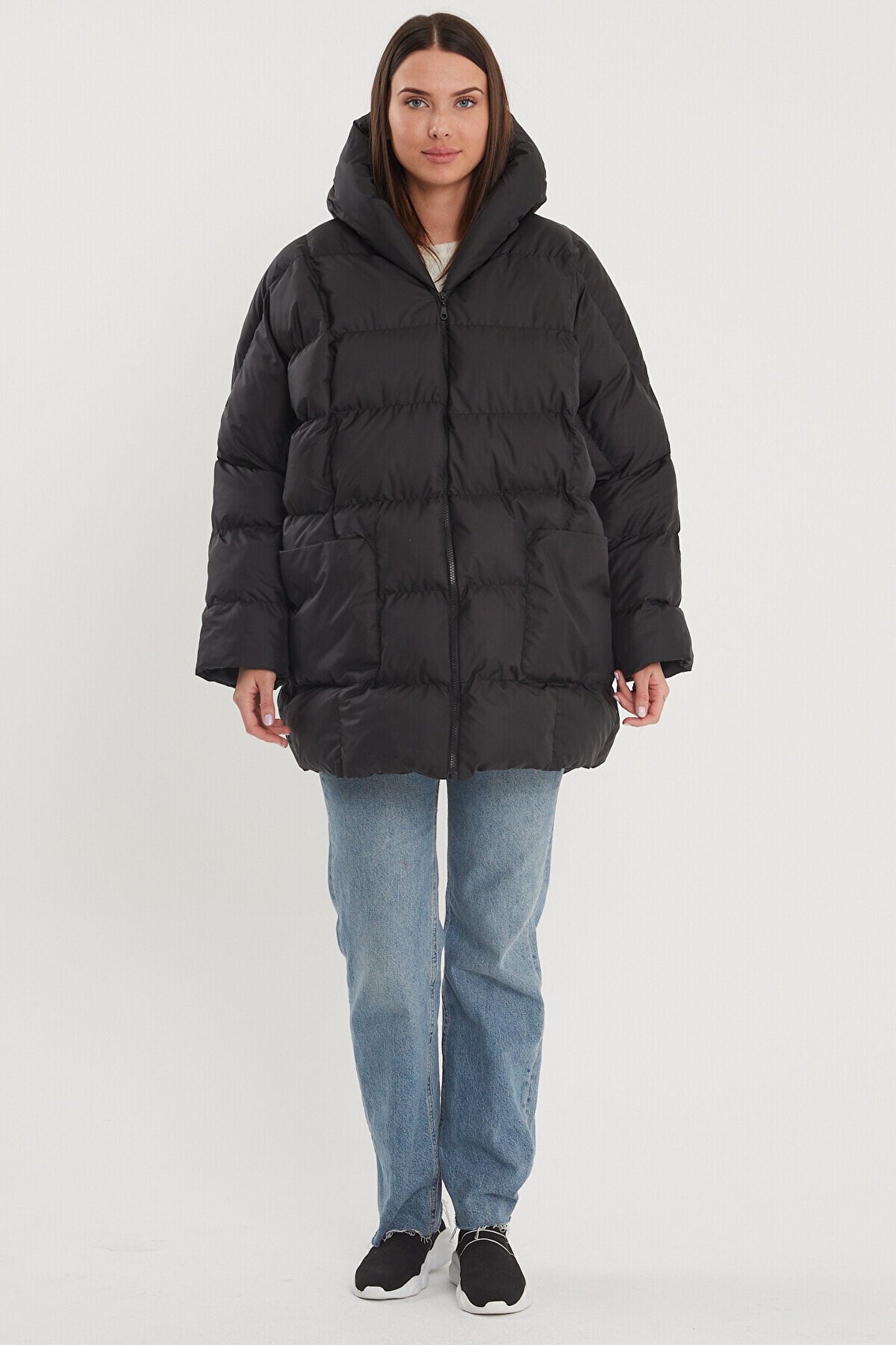 ZUQA STORE Kadın Kapşonlu Oversize Siyah Şişme Mont